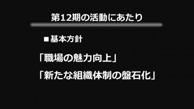 第12期の活動にあたり「職場の魅力向上」と「新たな組織体制の盤石化」を基本方針に掲げ、さまざまな活動を推進していきます。